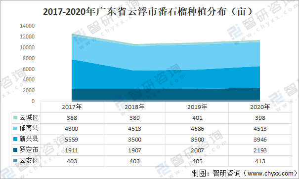 2017-2020年廣東省云浮市番石榴種植分布(畝)