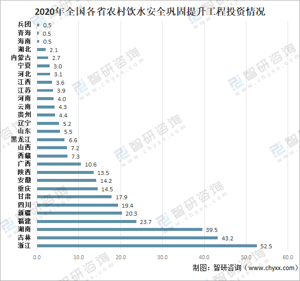 2020年全國各省份農村飲水安全鞏固提升工程投資情況