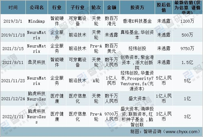 2019-2022年中國腦機接口行業(yè)投融資情況