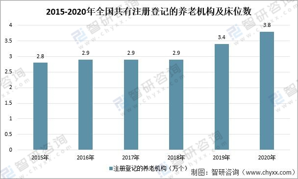 2015-2020年全國共有注冊登記的養(yǎng)老機(jī)構(gòu)及床位數(shù)