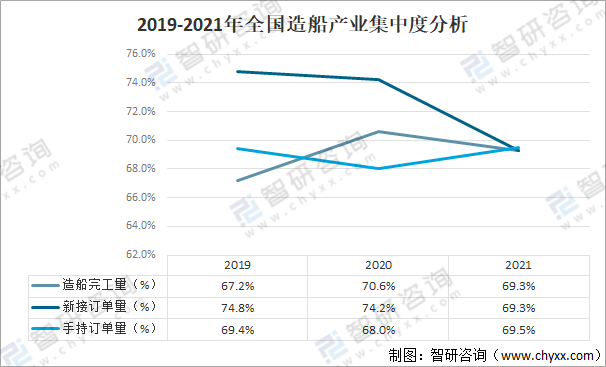 2019-2021年全國造船產業集中度分析