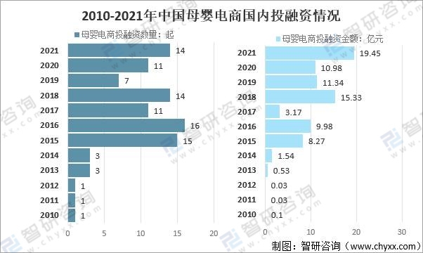 2010-2021年中國母嬰電商投融資情況