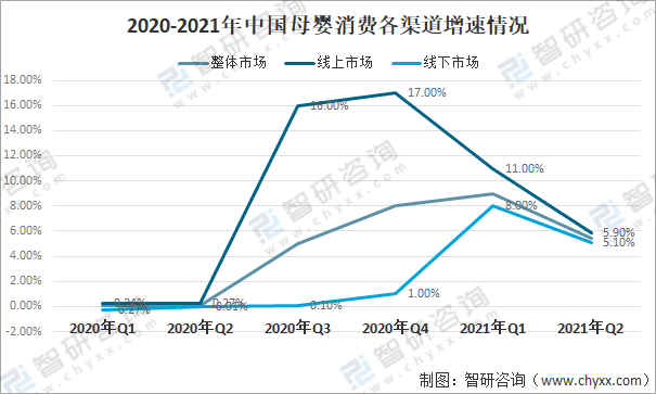 2020-2021年中國母嬰消費各渠道增速情況