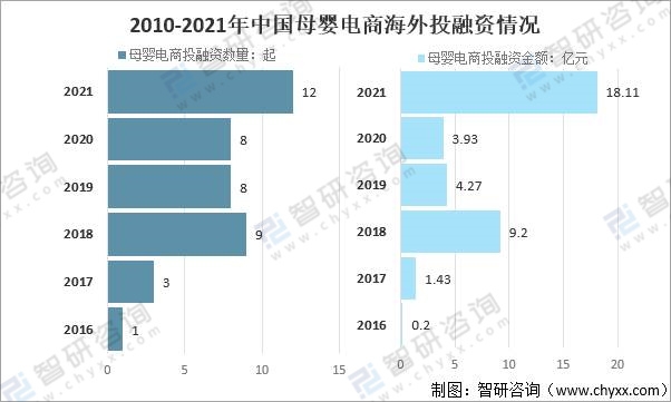 從中國母嬰電商海外投融資情況來看,2021年,中國母嬰電商海外投融資12起,融資金額高達18.11億元,均創歷史新高。