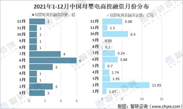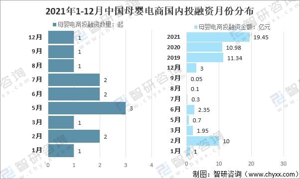 2021年1-12月中國母嬰電商國內投融資月份分布
