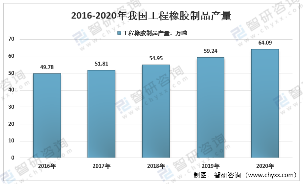 2016-2020年我國工程橡膠制品產(chǎn)量