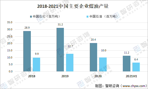 我國主要供應煤油企業為中國石化、中國石油等。其中2021上半年中國石油化工股份有限公司煤油產量為11.24百萬噸;中國石油天然氣股份有限公司煤油產量為6.356百萬噸。
