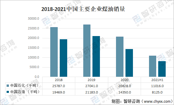 其中2021上半年中國石油化工股份有限公司煤油銷量為11016千噸;中國石油天然氣股份有限公司煤油銷量為8125千噸。