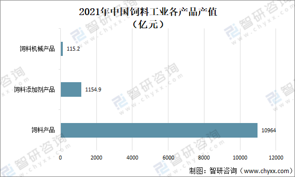 2021年中國飼料工業(yè)各產(chǎn)品產(chǎn)值