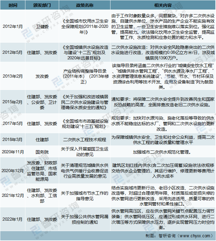 相關報告:智研咨詢發布的《2022-2028年中國二次供水行業市場專項調研及發展策略分析報告