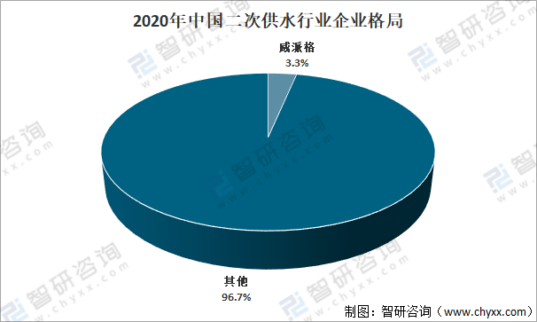 中國二次供水行業市場主要以地方性二次供水設備廠商為主,中小規模企業較多,集中度不高。其中龍頭企業之一-威派格2020年市場份額僅為3.3%,預計隨著未來國家監管加嚴,市場份額將逐步向規模較大的企業集中。