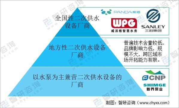 目前,中國二次供水行業企業主要分為三大類,分別為全國性二次供水設備廠商(代表企業:威派格、青島三利、上海熊貓等)、地方性二次供水設備廠商、以水泵為主兼營二次供水設備的廠商(代表企業:中金環境、 新界泵業等)。