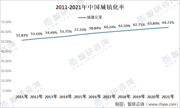 截至2021年,我國城鎮化率達到64.72%,較2011年提升了12.89百分點,隨著城市化步伐的加快,部分城市建筑用地容積率不斷攀升,需要二次供水設備的高層、小高層建筑和高地集中式住宅小區的數量大幅度增加。