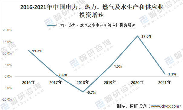 2016-2021年中國電力、熱力、燃氣及水生產和供應業投資增速