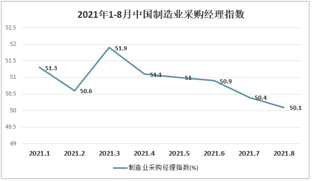 2021年1-8月中國制造業(yè)采購經(jīng)理指數(shù)