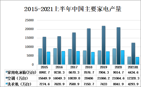 2015-2021上半年中國主要家電產量