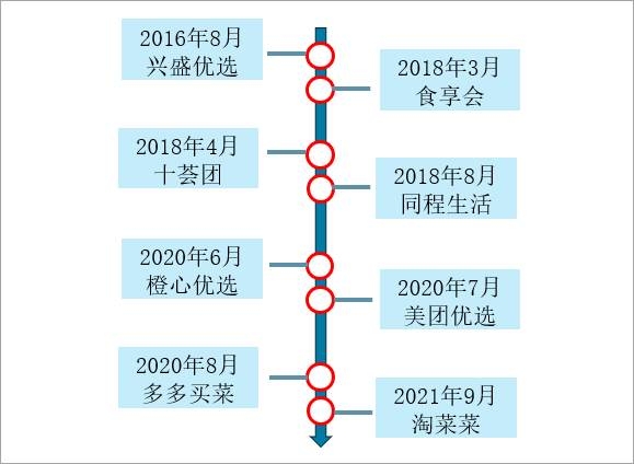 中國主要社區團購平臺成立時間