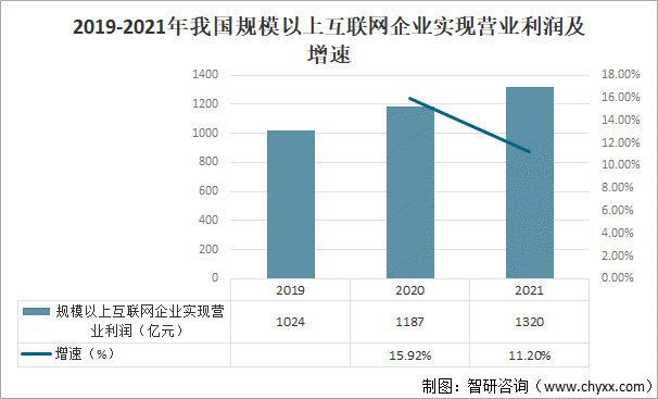 近年來,我國互聯網企業營業成本明顯上升,營業利潤增速保持兩位數。2021年,我國規模以上互聯網企業共實現營業利潤1320億元,較上年增加133億元,同比增長11.2%,增速比上年減少4.71個百分點。