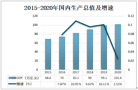 圖表:2017-2021年中國GDP總量及增長趨勢