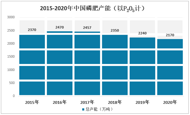 近年來,中國磷肥產能面臨嚴重過剩,在供給側改革、環保要求持續加碼、行業準入門檻不斷提升及下游需求波動的作用下,2017年后產能持續下降,根據中國磷復肥工業協會數據:2021年中國磷肥產能為2170萬噸(以P2O5計),較2019年的2240萬噸減少了70萬噸。隨著“三磷”綜合整治、《中華人民共和國長江保護法》的落地,我國磷肥供給有望迎來新一輪強有力的壓縮。2015-2021年中國磷肥產能(以P2O5計)