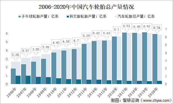 2006-2020年中國汽車輪胎總產量情況