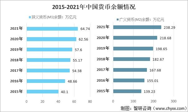 2015-2021年中國貨幣余額情況