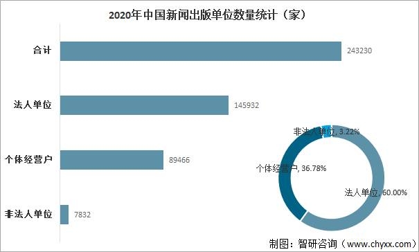 2020年中國(guó)共有新聞出版單位24.3萬家,較2019年增長(zhǎng)1.3%。其中,法人單位14.6萬家,增長(zhǎng)2.7%,占單位總數(shù)的60.0%,提高0.8個(gè)百分點(diǎn);非法人單位0.8萬家,降低12.7%,占3.2%,減少0.5個(gè)百分點(diǎn);個(gè)體經(jīng)營(yíng)戶8.9萬家,增長(zhǎng)0.5%,占36.8%,減少0.3個(gè)百分點(diǎn)。