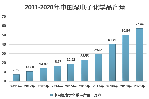 2011-2020年中國濕電子化學(xué)品行業(yè)產(chǎn)量