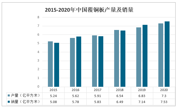 2015-2020年中國覆銅板產量及銷量