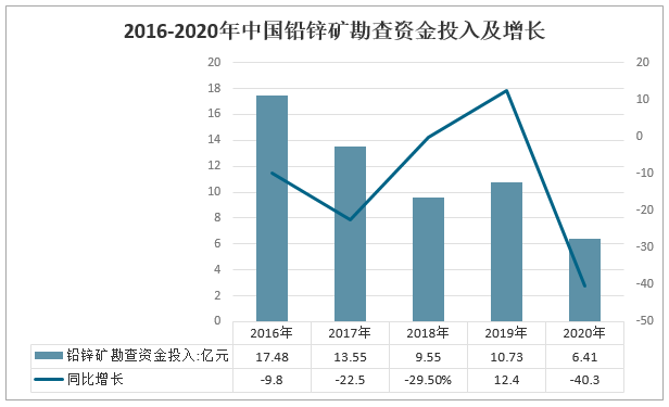 2016-2020年中國鉛鋅礦勘查資金投入及增長
