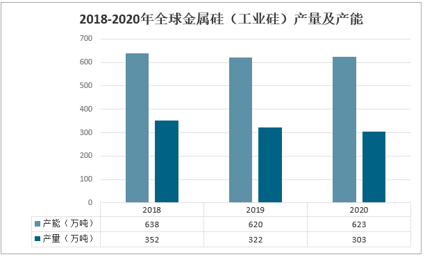 2018-2020年全球金屬硅(工業硅)產量及產能