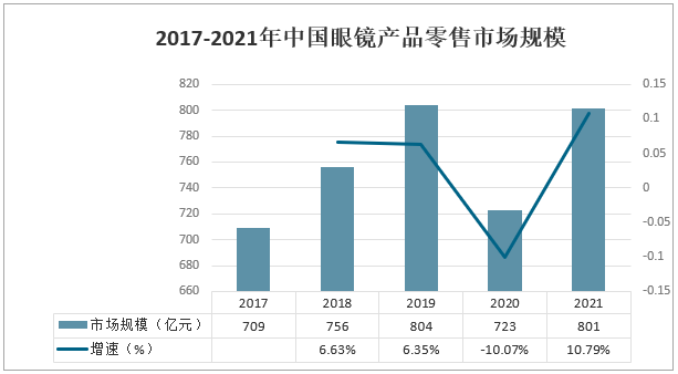 2017-2021年中國眼鏡產品零售市場規模