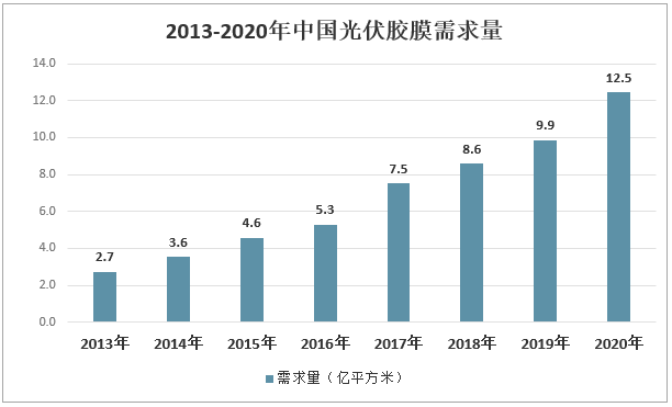 2013-2020年中國光伏膠膜需求量
