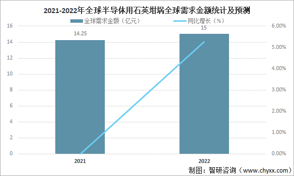 2021-2022年全球半導(dǎo)體用石英坩堝全球需求金額統(tǒng)計及預(yù)測