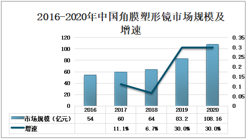 2016-2020年中國角膜塑形鏡市場規模及增速