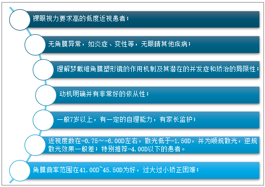 角膜塑形術是唯一獲得醫療界認可非手術、安全有效有效控制近視加深方法,是一種醫療行為,需在正規醫療機構中進行。角膜塑形鏡適合佩戴人群