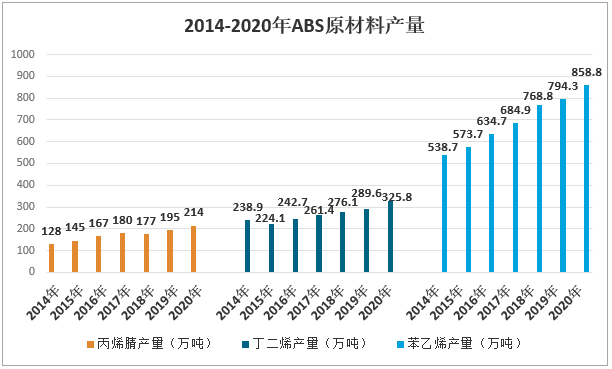 2014-2020年ABS原材料產量