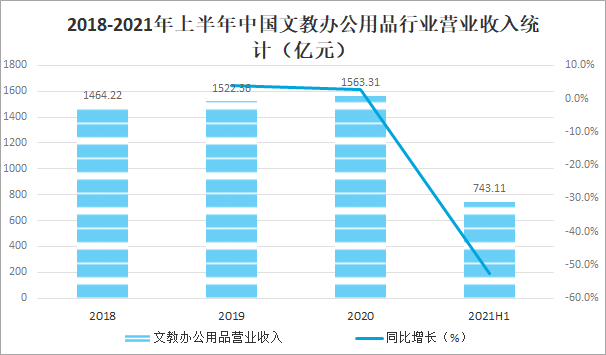 2018-2021年上半年中國文教辦公用品行業營業收入統計