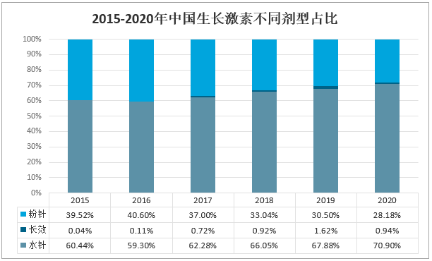 2015-2020年中國生長激素不同劑型占比
