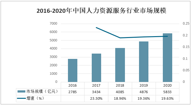 圖表:2016-2020年中國人力資源服務行業(yè)市場規(guī)模