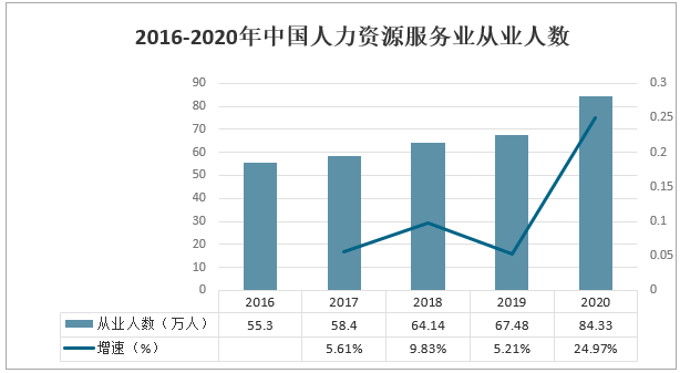 2016-2020年中國人力資源服務業(yè)從業(yè)人數(shù)統(tǒng)計