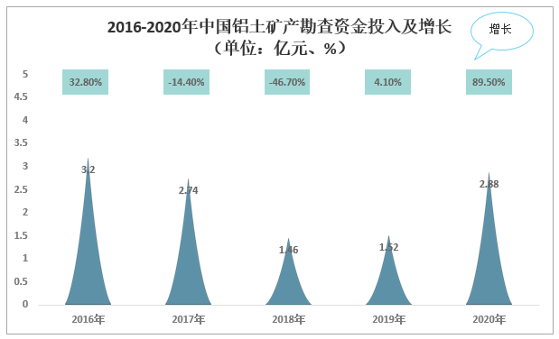 2016-2020年中國鋁土礦產勘查資金投入及增長