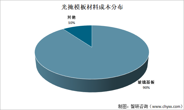 光學掩模板是在薄膜、塑料或玻璃基體材料上制作各種功能圖形并精確定位,以便用于光致抗蝕劑涂層選擇性曝光的一種結構。掩膜版應用十分廣泛,在涉及光刻工藝的領域都需要使用掩膜版,如IC(集成電路)、FPD(平板顯示器)、PCB(印刷電路板)、MEMS(微機電系統)等。光掩模板主要由玻璃基板與遮光膜兩部分組成,其中玻璃基板成本占整體材料成本的90%。光掩模玻璃基板是指用于制作光掩模板的空白玻璃,也被稱作制版玻璃。光掩模板材料成本分布