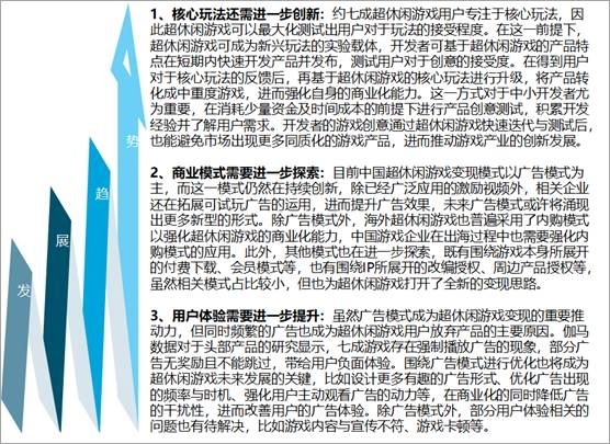 中國超休閑游戲取得較大成績,未來核心玩法還需進一步創新;商業模式需要進一步探索;用戶體驗需要進一步提升將是中國超休閑游戲市場未來重要發展趨勢。