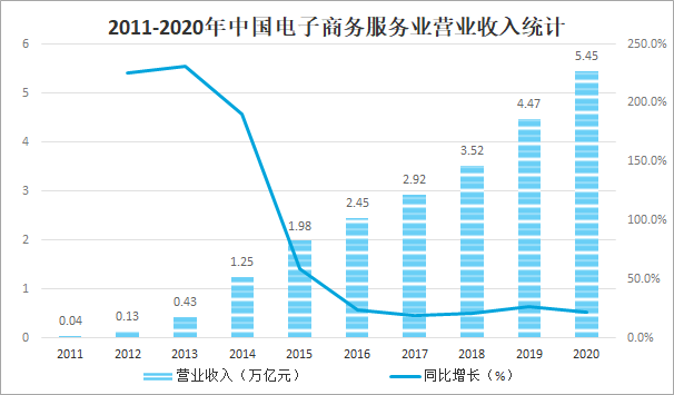 2011-2020年中國(guó)電子商務(wù)服務(wù)業(yè)營(yíng)業(yè)收入統(tǒng)計(jì)