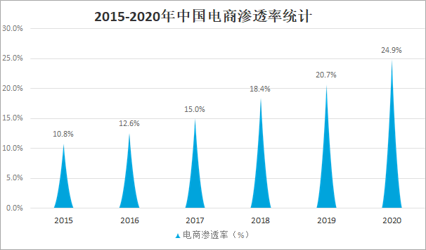 近年來中國電商滲透率不斷提升,2020年中國電商滲透率達24.9%,較2019年增長了4.2%,隨著中國電商市場消費不斷下沉和邊緣化擴張,中國電商滲透率將不斷提升,為快遞行業(yè)發(fā)展帶來新增量,電商件空間依舊可觀。