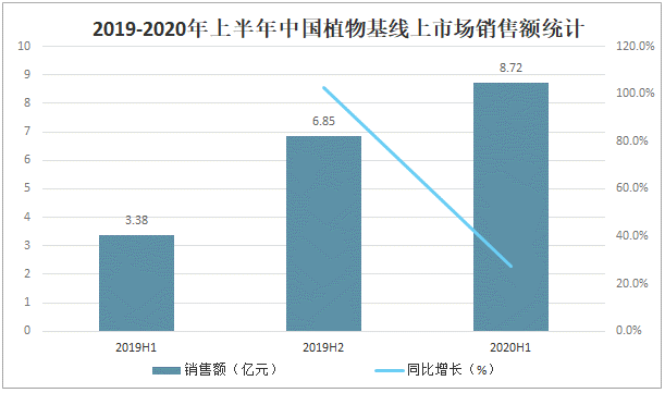 2019-2020年上半年中國植物基線上市場銷售額統計