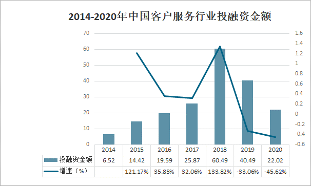 2014-2020年中國客戶服務(wù)行業(yè)投融資金額
