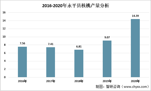 2016-2020年永平縣核桃產(chǎn)量分析