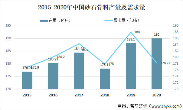 2015-2020年中國砂石骨料產(chǎn)量及需求量